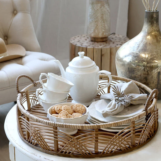 Chic Antique – Runde Serviertablett aus Rattan & Bambus, Ø45 cm